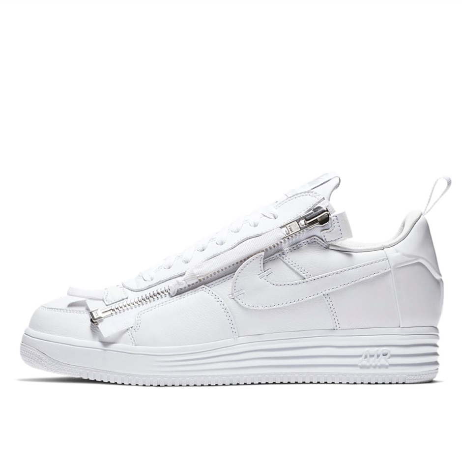 Η Nike συνεργάστηκε με το ακρωνύμιο για να μας φέρει το «lunar Force 1 Low All White» που κυκλοφόρησε τον Δεκέμβριο του 2017 ως μέρος της συλλογής Af100 της Nike για την 35η επέτειο της αεροπορικής δύναμης 1. Το Sneaker που σχεδιάστηκε από τον Errolson Hugh χρησιμοποιεί την κλασική χαμηλή σιλουέτα Air Force 1 και διατίθεται σε ολόλευκο χρώμα. το επάνω μέρος είναι κατασκευασμένο από Premium λευκό δέρμα. Η πλευρική πλευρά του Sneaker διαθέτει ασημί κατασκευή με φερμουάρ από τις δαντέλες που φτάνουν μέχρι το κουτί των ποδιών.