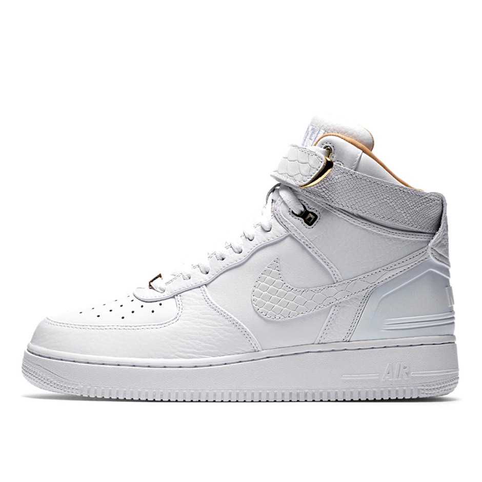 Η Nike ενώνει τις δυνάμεις της με τον αμερικανό σχεδιαστή Streetwear Don C για να μας φέρει το «air Force 1 High Don C White Just Don» που κυκλοφόρησε τον Δεκέμβριο του 2017. Το Sneaker διατίθεται σε λευκό παντού και διαθέτει πάνελ που ανασηκώθηκαν από τη σιλουέτα Air Force 3 . τα πάνελ Tpu στο πλάι αναφέρονται στη σιλουέτα του Air Force 2. το επάνω μέρος είναι φτιαγμένο από Premium λευκό δέρμα και συνδυάζεται με την εσωτερική φόδρα από καφέ χρώματος δέρματος. Οι χρυσές πινελιές κοσμούν το λουράκι στο μέσο του ποδιού, τις κορυφαίες οπές και τις ντουμπρέλες.