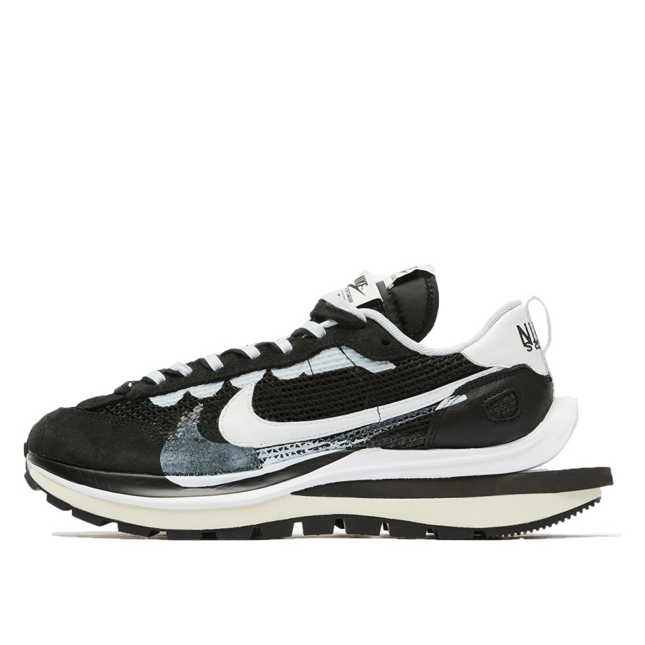 Οι Sacai X Nike Vaporwaffle Black έκαναν επιτέλους την πολυαναμενόμενη εμφάνισή τους. που κυκλοφόρησε μαζί με το αντίστοιχο φούξια ιστιοφόρα, το μαύρο χρώμα αποδεικνύεται το σταθερό αγαπημένο του ζευγαριού. το μαύρο Vaporwaffle Sacai X Nike είναι ο τέλειος συνδυασμός του ιδιαίτερα κομψού και μινιμαλιστικού σχεδιαστικού στυλ της Abe σε συνδυασμό με τη λειτουργικότητα και την τεχνική ανδρεία της Nike οδηγεί σε ένα διακριτικό αλλά ευέλικτο Sneaker. Ένας πολυτελής συνδυασμός μαύρου σουέτ και βάφλα στο επάνω μέρος, που αντισταθμίζεται από το εντυπωσιακό λευκό δερμάτινο Swoosh θα σας κάνει να δείτε διπλό. διπλές στοιβαγμένες σόλες που προσθέτουν ύψος και μήκος στη σιλουέτα των Sneakers, σε συνδυασμό με τα διπλά Swooshes και τα κορδόνια σε διπλούς τόνους έχουν γίνει η υπογραφή των πολυπόθητων συνεργασιών της Sacai X Nike.